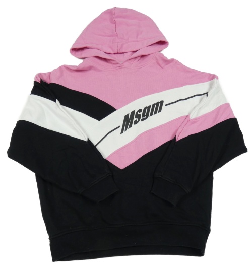 Růžovo-bílo-černá mikina s nápisem a kapucí