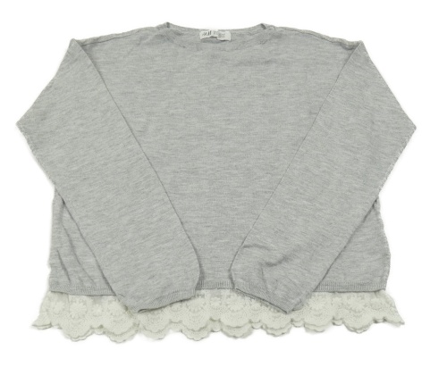 Šedý melírovaný lehký crop svetr s krajkou H&M
