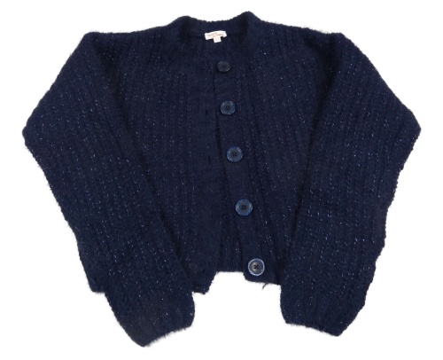 Tmavomodrý třpytivý propínací crop svetr