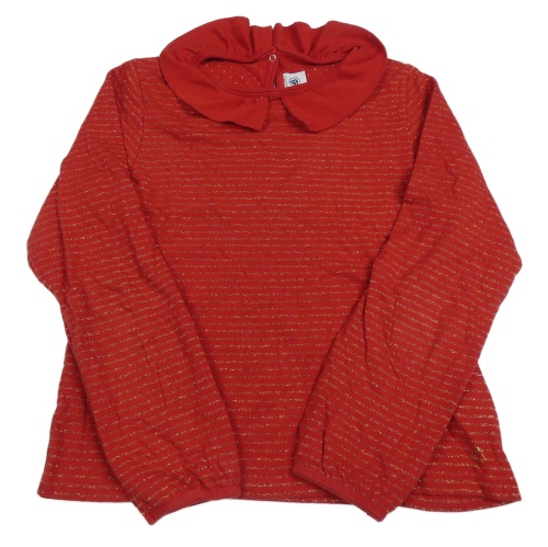 Červeno-zlaté pruhované mikinotriko s límečkem Petit Bateu