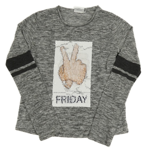 Šedý melírovaný lehký úpletový svetr s obrázkem z flitrů C&A