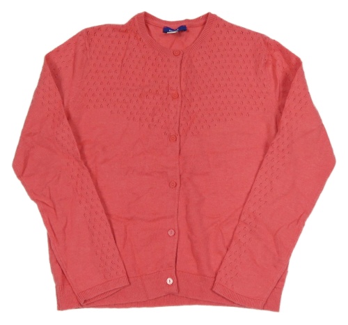 Jahodový melírovaný propínací svetr s perforovaným vzorem OKaïdi