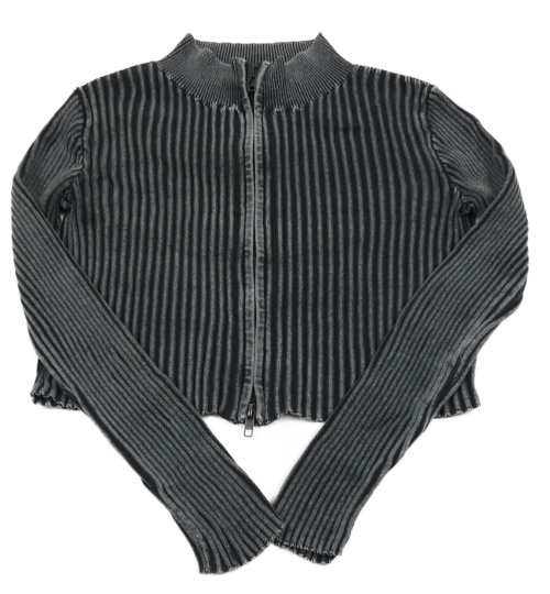 Černo-šedý melírovaný žebrovaný propínací crop svetr H&M