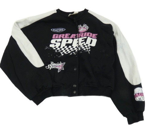 Černo-bílá baseballová crop mikina s nápisy a praporky H&M