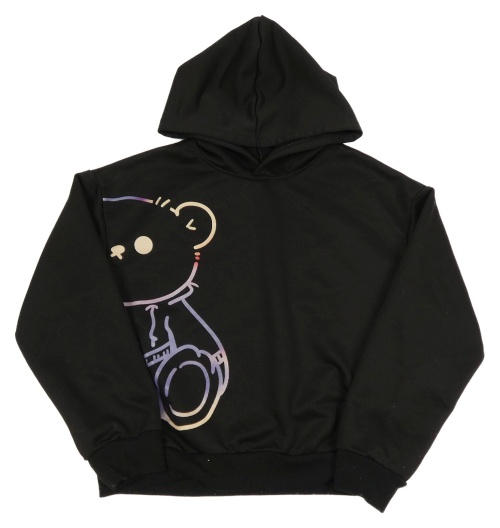 Černá crop mikina s medvídkem a kapucí Shein