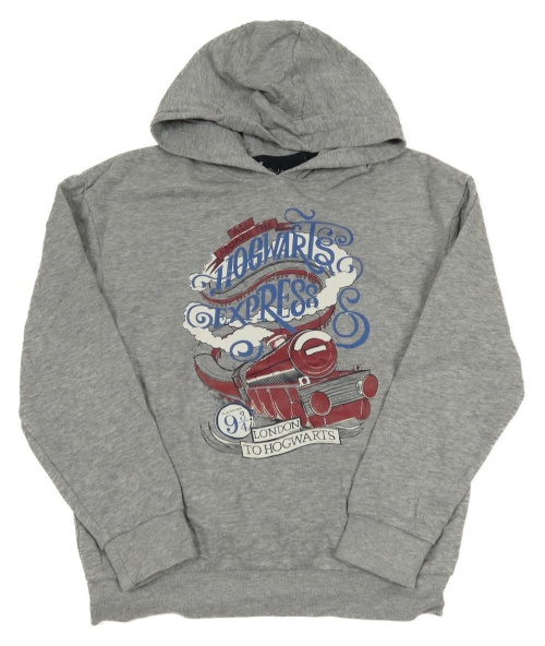 Šedá melírovaná mikina s mašinkou a nápisy - Harry Potter a kapucí