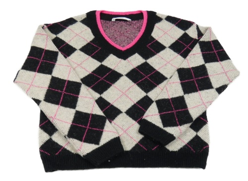 Černo-světlešedo-neonově růžový károvaný crop svetr M&S