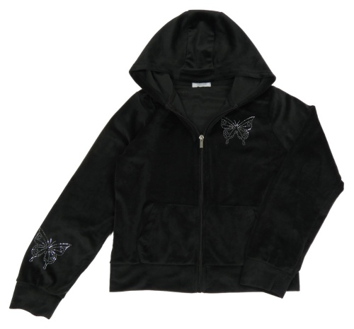 Černá plyšová propínací mikina s motýlem z kamínků a kapucí Primark