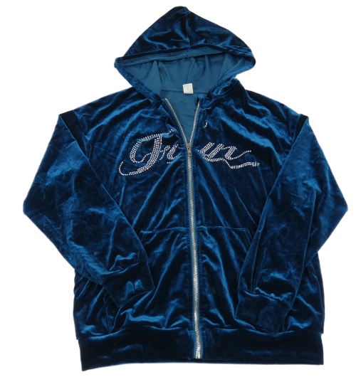 Tmavomodrá sametová propínací mikina s kamínky a kapucí Shein