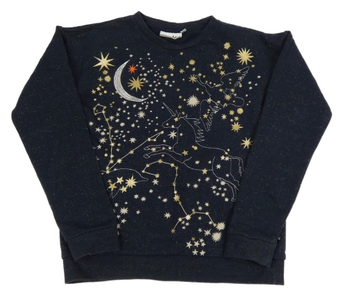 Tmavomodro-zlatá mikina se zvířátky a hvězdami