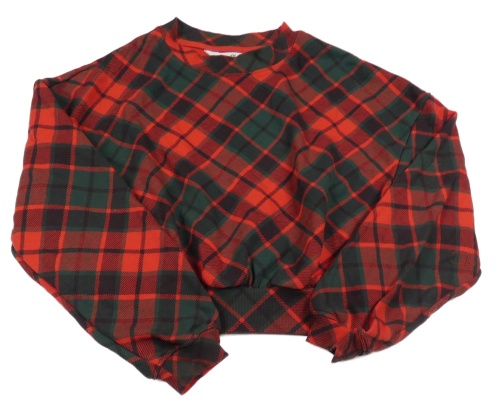 Červeno-tmavozelená kostkovaná crop mikina H&M