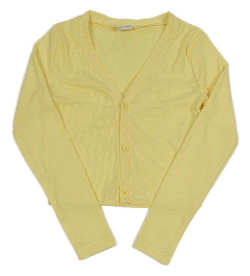 Žlutá žebrovaná propínací crop mikina s Y.F.K.