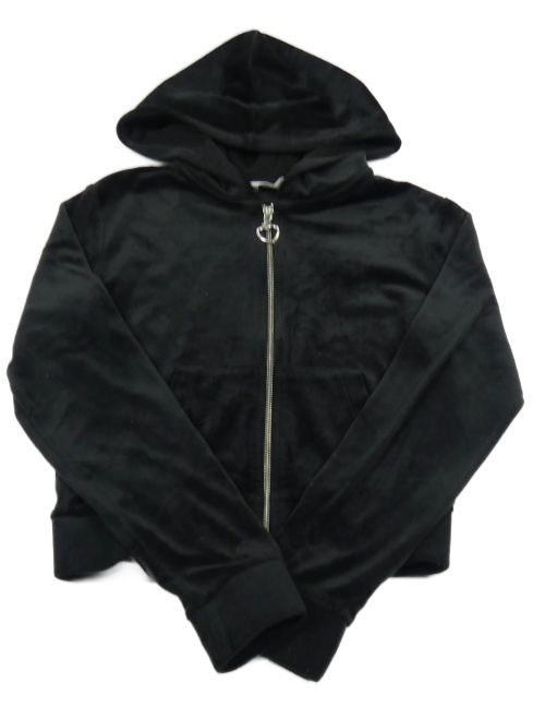Černá sametová crop propínací mikina s kapucí H&M