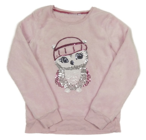 Světlerůžová plyšová mikina se sovou z flitrů Kids