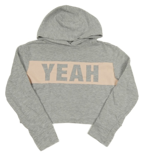 Šedá melírovaná crop mikina s nápisem a kapucí C&A