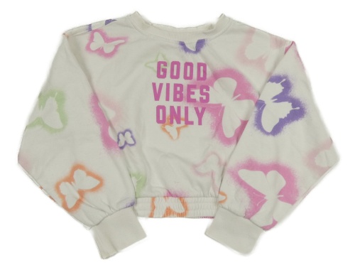 Bílá crop mikina s motýly
