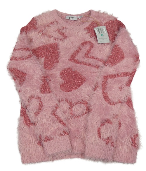 Nové - růžový chlupatý svetr se srdíčky L&D