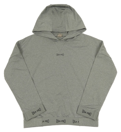 Šedá melírovaná sportovní mikina s logem a kapucí USA pro