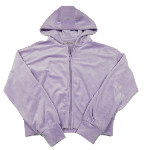 Fialová plyšová propínací crop mikina s kapucí