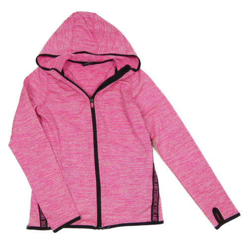 Křiklavě růžovo-černá melírovaná funkční sportovní propínací mikina s pruhem s nápisy a kapucí ERGEENOMIXX