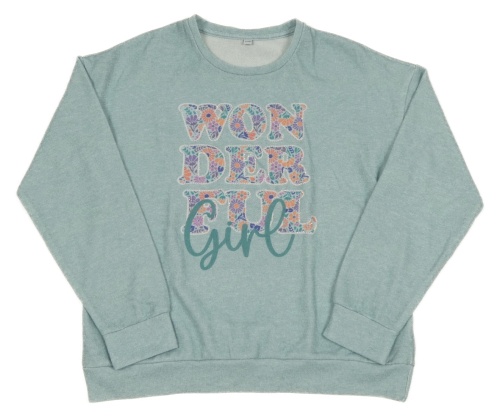 Světlemodrý svetr s nápisem a kamínky