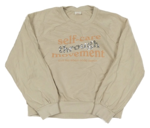 Béžová crop mikina s nápisem a flitry S. Oliver