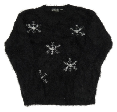 Černý chlupatý svetr s vločkami alive