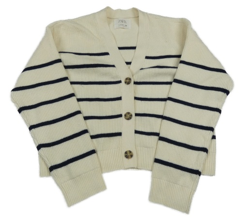 Smetanovo-černý pruhovaný propínací crop svetr Zara