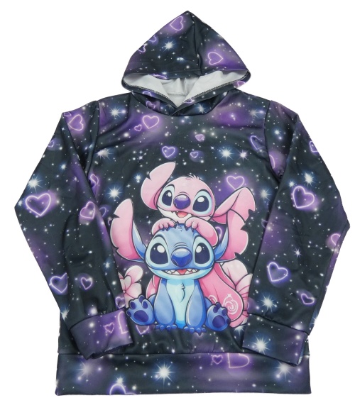 Šedo-fialová batikovaná mikina se Stitchem a kapucí