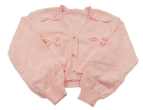 Růžový propínací crop svetr s mašlemi Shein