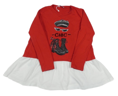 Červená teplákovo/šifonová tunika s botami a brýlemi Mayoral