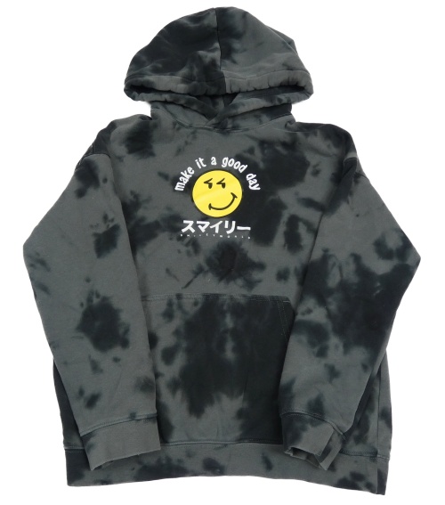 Šedo-černá batikovaná mikina se smajlíkem a kapucí H&M