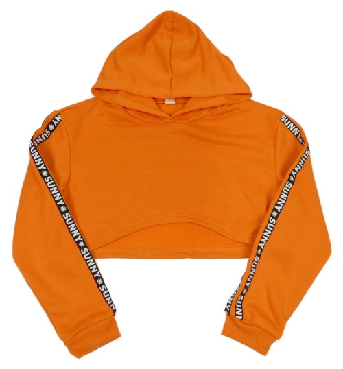 Tmavooranžová crop mikina s pruhy s nápisy a sluníčky a kapucí SHEIN