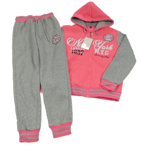 Nové - 2set - Neonově růžovo-šedá propínací mikina s nápisem a kapucí + tepláky