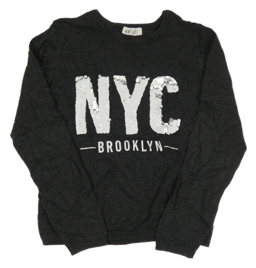 Tmavošedý lehký svetr s nápisem z flitrů H&M