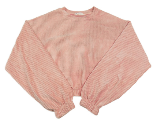 Světlerůžová sametová žebrovaná crop mikina Matalan