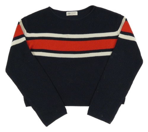 Tmavomodro-červeno-smetanový crop svetr s pruhy H&M