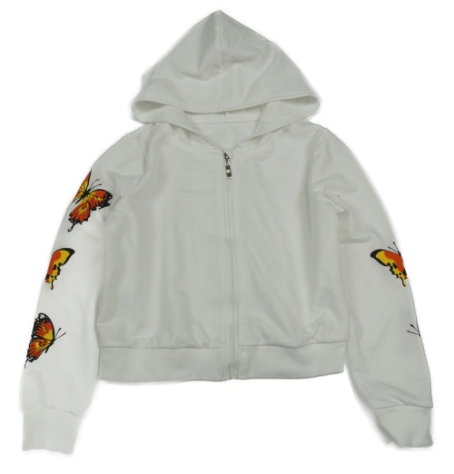 Bílá propínací crop mikinan s motýly a kapucí
