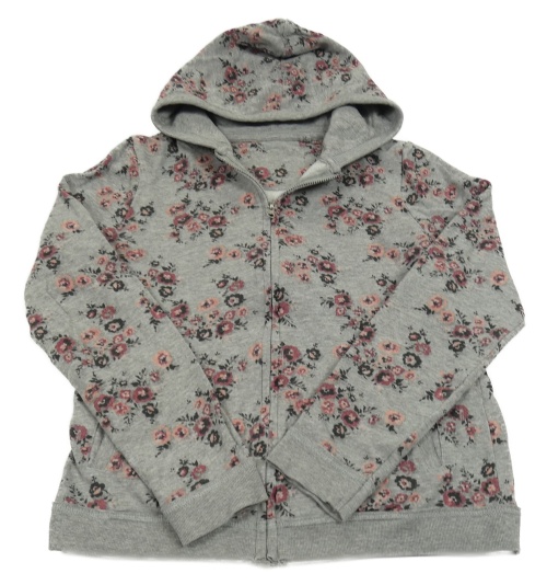 Šedá melírovaná květovaná propínací mikina s kapucí