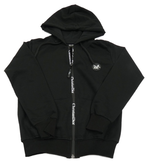Černá propínací mikina s nášivkou a logy a kapucí Christian Dior