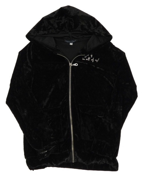 Černá lesklá sametová propínací mikina s nápisy a kapucí POCOPIANO