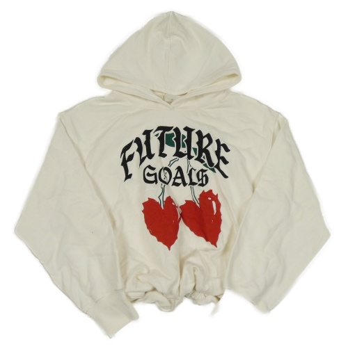 Smetanová crop mikina a nápisem a kapucí