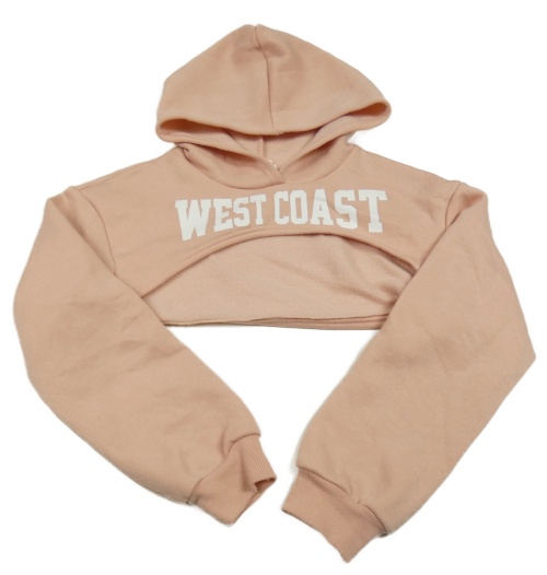 Světlerůžová crop mikina s nápisem a kapucí shein