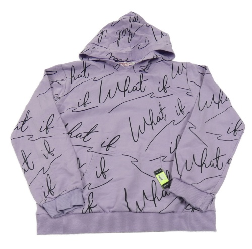Fialová mikina s nápisy a kapucí