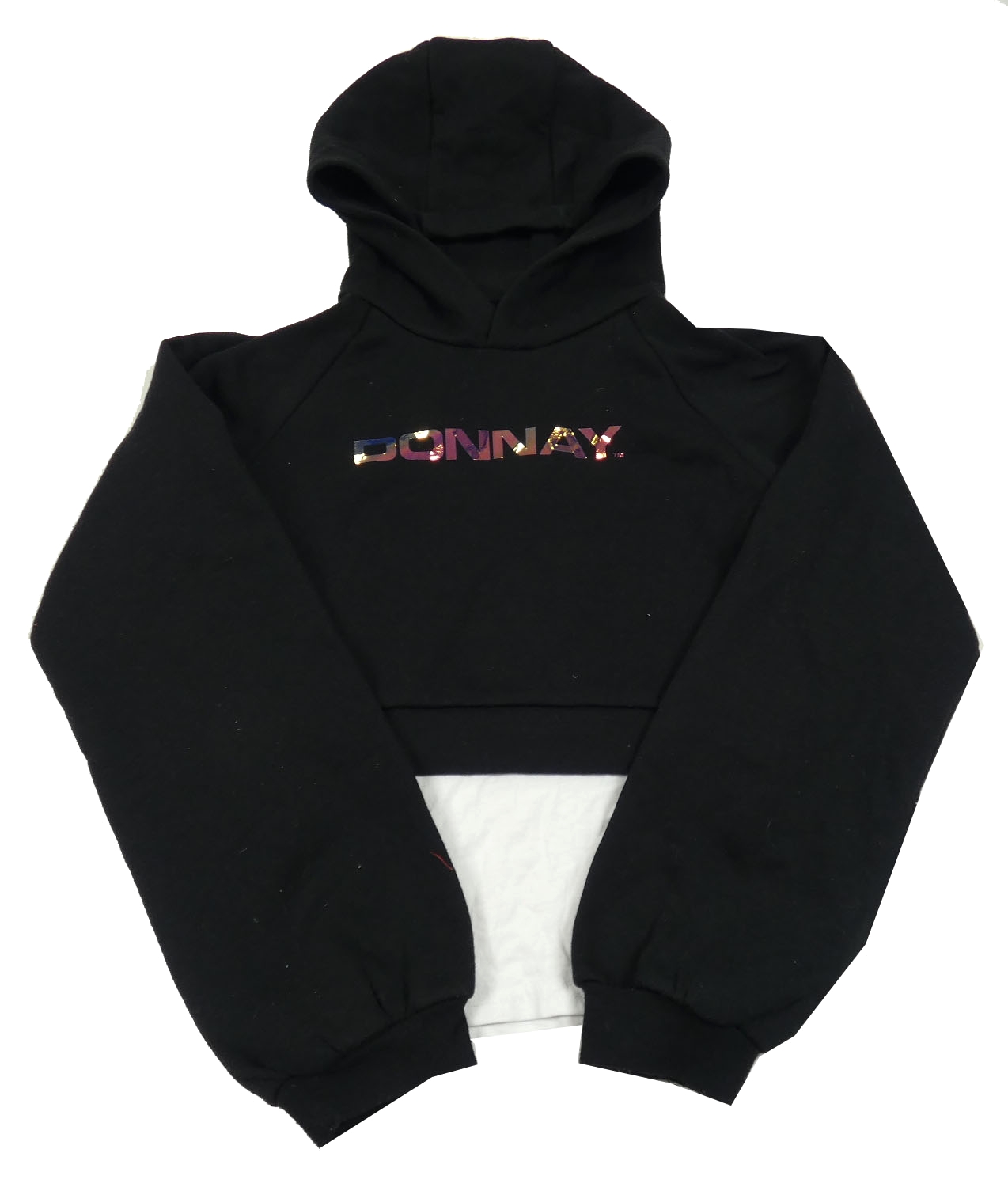 Černá crop mikina s nápisem, všitým topem a kapucí Donnay