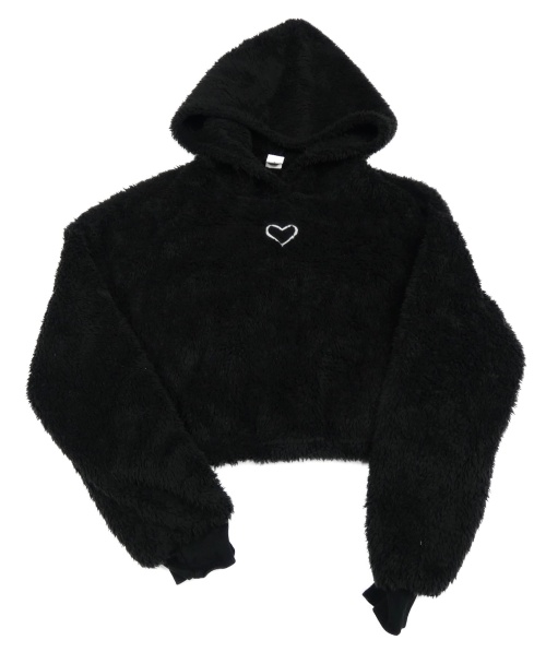Černá chlupatá crop mikina se srdcem a kapucí Shein
