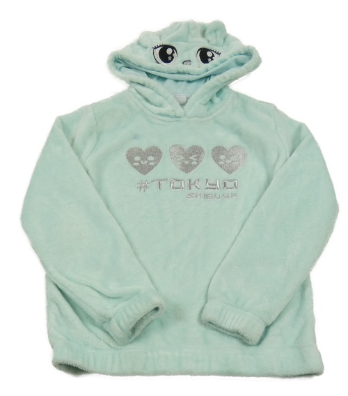 Mentolová chlupatá mikina se srdíčky a kapucí