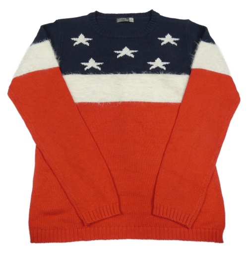 Červeno-tmavomodrý svetr s hvězdičkami