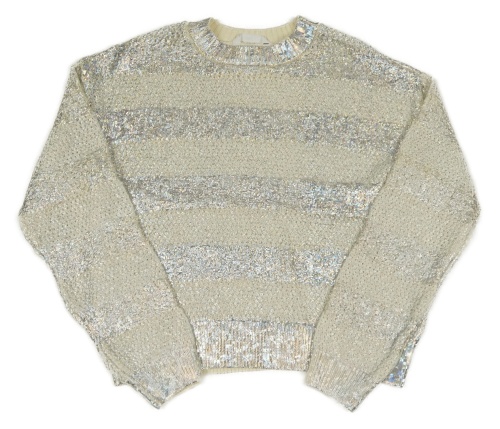 Stříbrno-smetanový pruhovaný crop svetr M&S