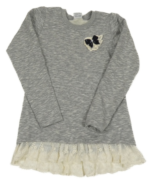 Šedá melírovaná mikina s mašlí a krajkovým volánkem